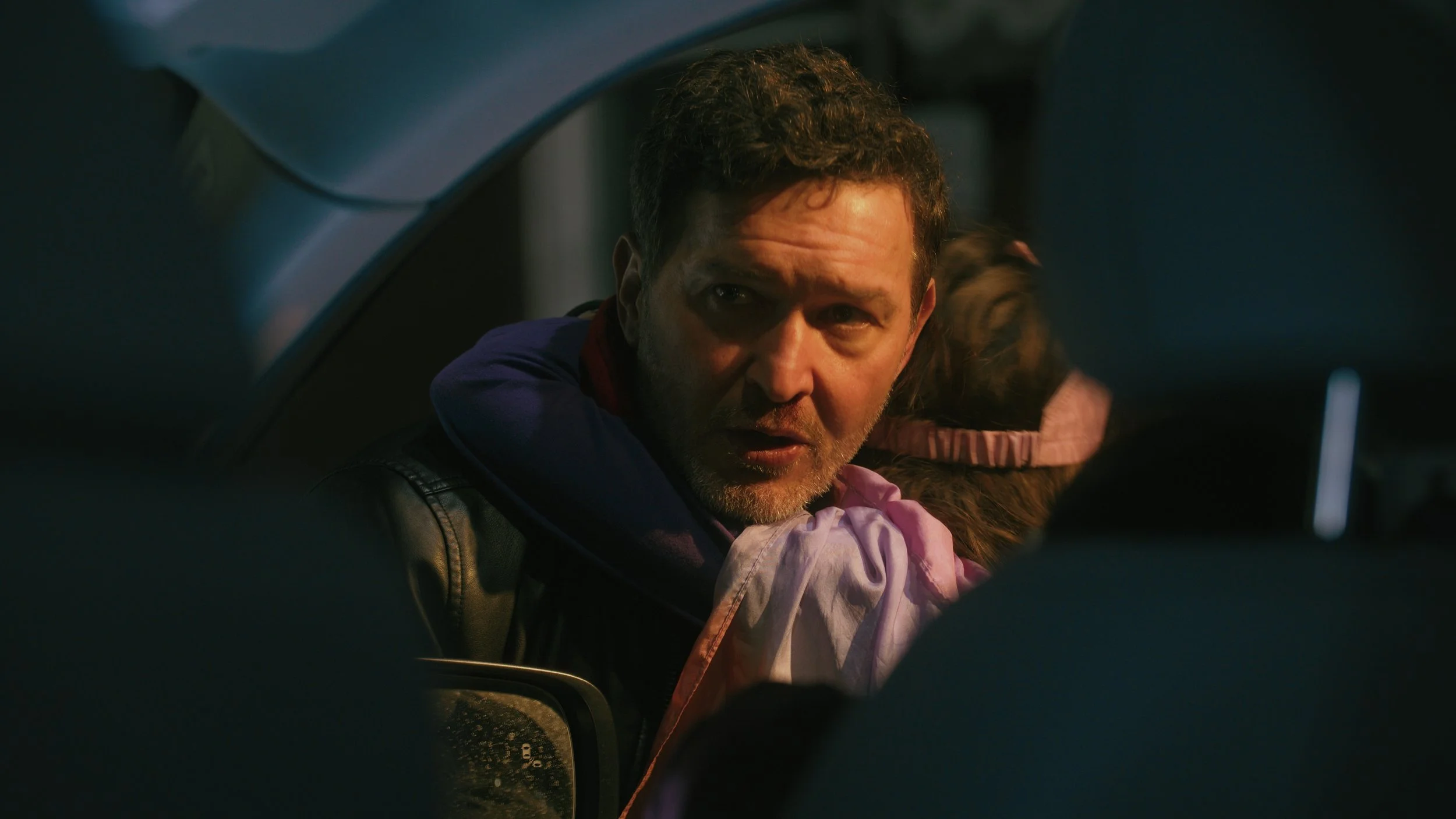 Roman is portrayed not as an archetypal hero, but as a man navigating contradiction—discipline shaped by military experience, vulnerability shaped by fatherhood, and an undercurrent of volatility that never fully resolves. Emotion is internalized, revealed through stillness and controlled intensity rather than overt expression.